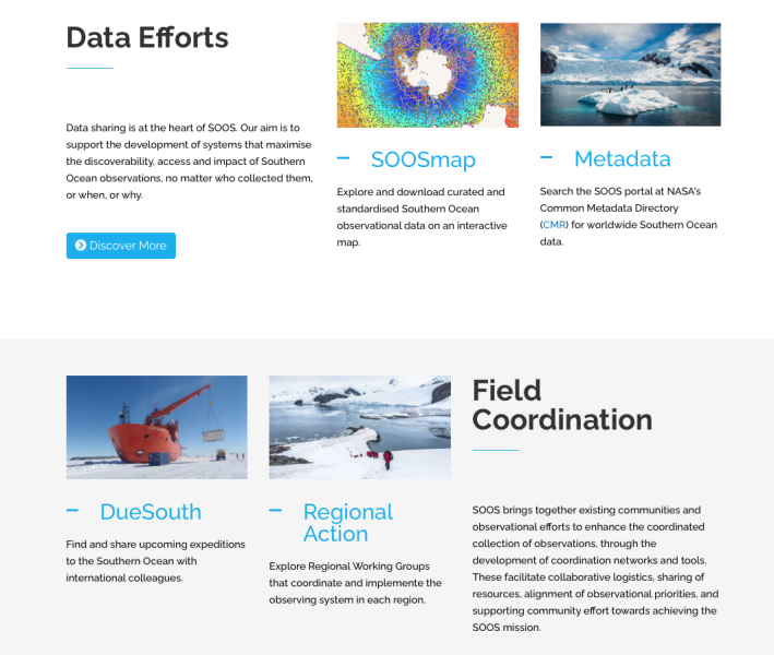The SOOS mission is to facilitate the collection and delivery of essential observations on dynamics and change of Southern Ocean systems to all international stakeholders (researchers, governments, industries), through design, advocacy and implementation of cost-effective observing and data delivery systems.