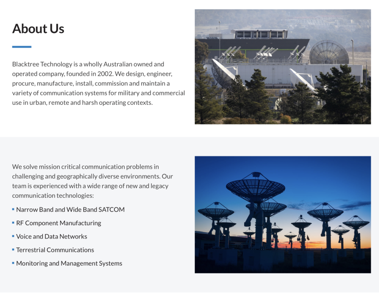 Blacktree Technology is an innovative communication solutions integrator working with leading edge radio and satellite communications capabilities.