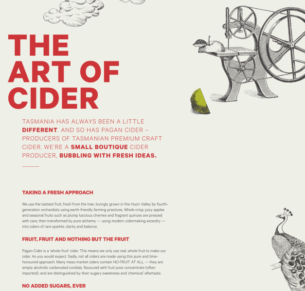 Apple Cider, Pear and Cherry Cider...Tasmanian premium craft cider. With its long apple-growing history and abundance of glorious fruit, Tasmania is the natural home of Pagan Cider.